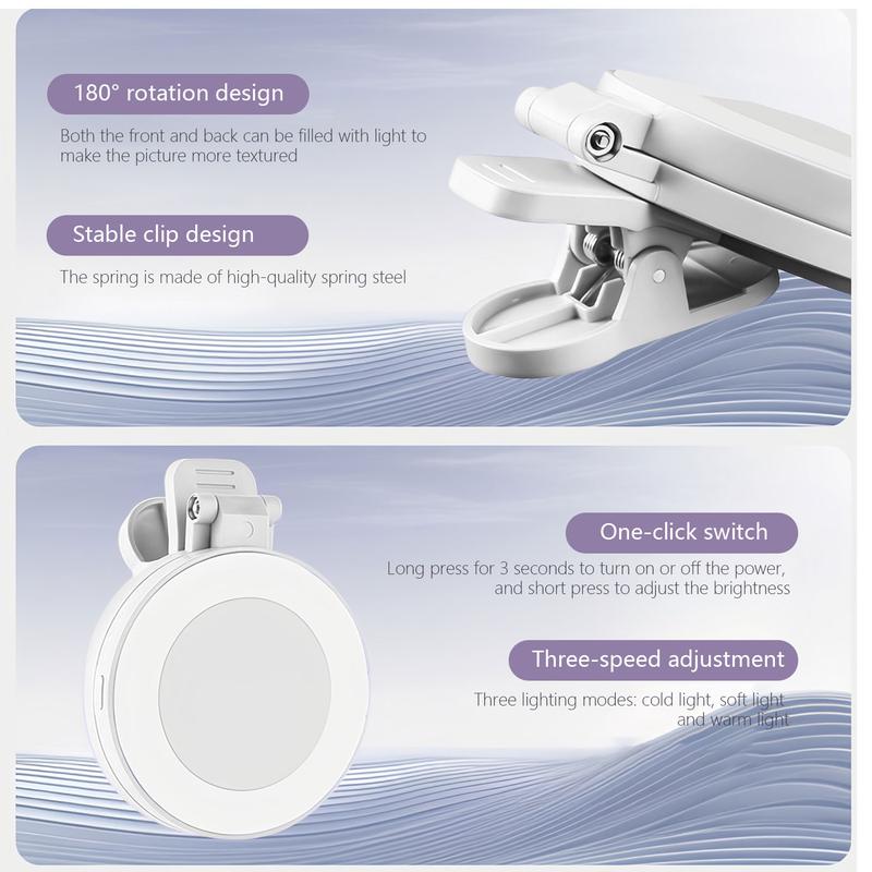 3-in-1 Rechargeable Makeup Light for Live Streaming, Video Calls, Selfie